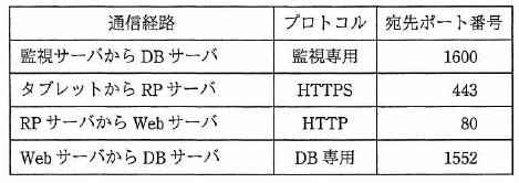 ![]() 図1 A社のネットワーク構成 販売支援システムに関わる通信経路について,通信経路で利用するプロトコル及び 宛先ポート番号を表1に示す。また,FW におけるフィルタリングの設定を表2に示す。