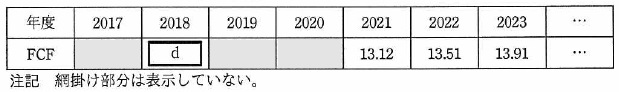 ここで,各年度の FCF は各年度末に発生すると考える。