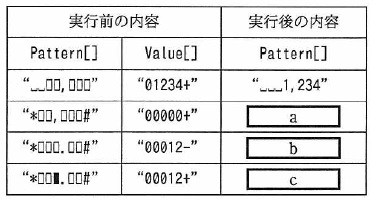 ![]() a に関する解答群 ウ “******Ø#” エ “******Ø*” b,c に関する解答群 ウ “****.12#” エ “****.12*” オ “***Ø.12#” カ “***Ø.12*”
