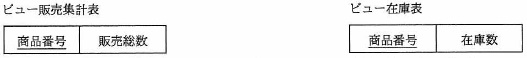 ビュー入荷集計表は運用開始から現在までの入荷数の総数を表示する。 さらに販売総数を把握するためにビュー販売集計表を,最新の在庫数を把握するために ビュー在庫表を作成する。ビュー在庫表は一度でも入荷した商品は在庫数ゼロでも表示する仕様である。 データベースに追加する表の構成を,図4に示す。 次の記述中の に入れる正しい答えを, 解答群の中から選べ。ここで,c1 と c2 に入れる答えは,c に関する解答群の中から 組合せとして正しいものを選ぶものとする。 図1〜図3の表を用いて,図4のビュー販売集計表を作成するための必要最小限の表の数は c1 である。 図4のビュー在庫表は,ビュー販売集計表を用いて作成する。 このとき,ビュー在庫表を作成するための必要最小限の表の数は, ビュー販売集計表も含めて c2 である。