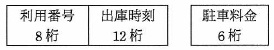 A 入庫時刻及び出庫時刻には,西暦の年,月,日と,24 時間表記の時(0 〜 23), 分(0 〜 59)が,それぞれ 4 桁,2 桁,2 桁,2 桁,2 桁で格納される。
