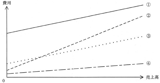 ![]() 図1 4社の売上高と費用の関係を示したグラフ 解答群