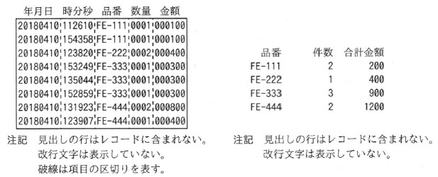 ![]() 図3 入力ファイルのレコード例 図4 集計ファイルのレコード例