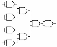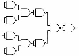 2入力 NAND 素子を用いて4入力 NAND 回路を構成したものはどれか。