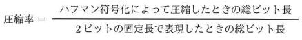 A 文字の出現回数表に基づいて,各文字に対応する葉の値を,配列の先頭の要素から順に格納する。 B 親が作成されていない節を二つ選択し,選択した順に左側の子,右側の子とする親の節を一つ作成する。 この節の値を,配列中で値が格納されている最後の要素の次の要素に格納する。 節の選択は節の値の小さい順に行い,同じ値をもつ節が二つ以上ある場合は, 配列の先頭に近い要素に値が格納されている節を選択する。 C 親が作成されていない節が一つになるまでBを繰り返す。 (3) ハフマン木から文字のビット列(以下,ビット表現という)を次の手順で作成する。 A 文字ごとに根から対応する葉までたどったとき,枝のビット値を順に左から 並べたものを各文字のビット表現とする。 図2に示すとおり,根から矢印のようにたどると,文字列αの文字“B”のビット表現は 010 となる。